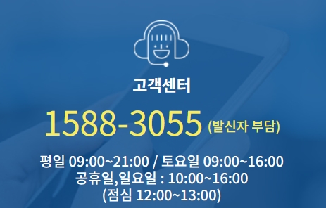 연수원 이용과 관련해서 더 궁금하거나 문의할 사항이 있으시면 고객센터 전화번호 1588-3055번으로 연락하시면 되는데요, 요금은 발신자 부담입니다. 운영시간은 평일 09시부터 21시까지, 토요일 09시부터 16시까지, 공휴일/일요일 10시부터 16시까지이며, 점심시간은 12시부터 13시까지입니다.