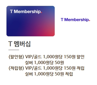 할인형의 경우 VIP 및 골드등급에 대하여 1천원당 150원 할인, 실버등급에 대하여 1천원당 50원 할인혜택을 제공합니다. 적립형의 경우 VIP 및 골드등급에 대하여 1천원당 150원 적립, 실버등급에 대하여 1천원당 50원 적립혜택을 제공합니다. 1일 1회까지 사용할 수 있고, 구매금액은 최대 20만원까지만 적용되며, T플러스포인트 사용이 가능합니다.