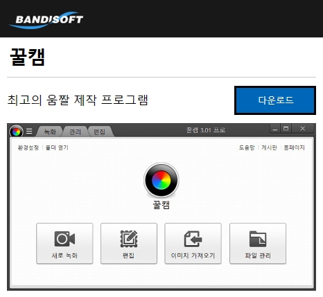 BANDISOFT에서 제공하는 여러가지 소프트웨어 중에서 꿀캠이라는 움짤 프로그램에 대하여 소개드리도록 하겠습니다. 손쉽게 GIF/WebP 움짤을 만들고 편집할 수 있는 프로그램이며 게임화면, 동영상 하이라이트, 유튜브 동영상, PC사용법 등을 움짤로 만들 수 있습니다.