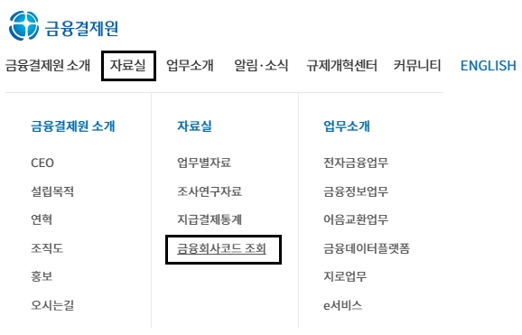 케이뱅크 코드번호 [금융회사 코드조회 방법]
