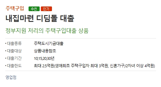 정부가 지원하는 저리의 주택구입대출 상품인데요, 이번시간에는 우리은행 디딤돌대출에 대하여 알아보겠습니다. 기간은 10/15/20/30년이고, 영업점을 통하여 신청할 수 있습니다.