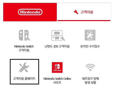 이외에도 Nintendo Switch 고객지원, 닌텐도 3DS 고객지원, 온라인 수리접수, Nintendo Switch Online 서포트, 네트워크 장애 발생 상황 메뉴도 이용할 수 있으니 참고하세요.