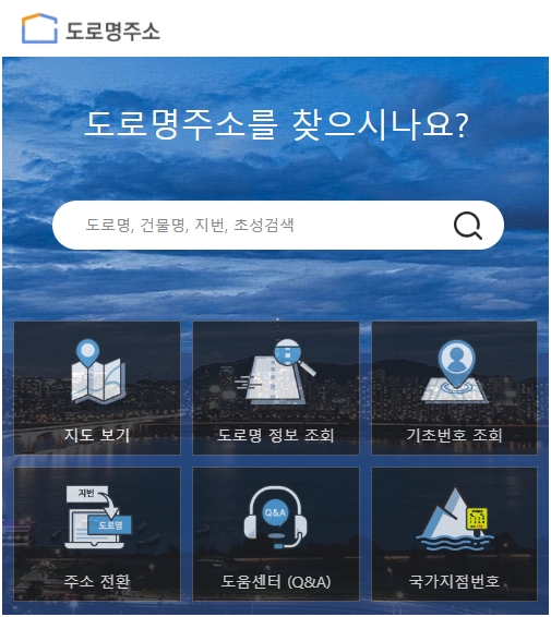 도로명주소 안내시스템 홈페이지(주소정보누리집(도로명주소 안내시스템) (juso.go.kr))에 접속하시면 위의 그림과 같은 메인화면을 볼 수 있는데요, 검색창에다가 도로명/건물명/지번/초성을 입력하여 검색할 수 있습니다. 또한 지도 보기, 도로명 정보 조회, 기초번호 조회, 주소 전환, 도움센터, 국가지점번호 메뉴도 제공하고 있으니 같이 참고해보세요.