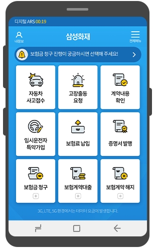 디지털 ARS 이용시 상담시간은 자동차 사고접수 / 고장출동 요청 / 임시운전자특약 서비스는 연중무휴 24시간, 보험금청구 / 대출 / 계약업무/ 기타상담은 평일 09시부터 18시까지입니다. 또한 이용요금은 개인별 통신사 약정요금에 따라 통화료 및 데이터 사용료가 부과됩니다.