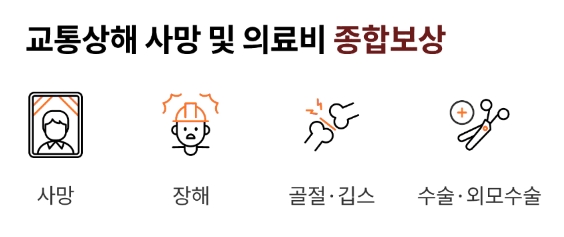 해당 보험상품은 교통재해로 인한 사고를 대비한 보험인데요, 사망이나 장해 및 각종 의료비와 치료비를 종합적으로 보장해주는 보험입니다. 저렴한 보험료로 폭 넓은 보장까지 제공한다고 하네요.