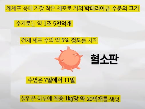 혈소판은 혈액중에 포함된 유형성분 중 하나이며, 작고 점착성이 있기에 혈관이 손상을 입어 출혈하게 되면 그 부위에 붙어서 혈전을 만들어 출혈을 멎도록 합니다.