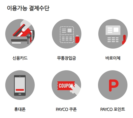 이용가능 결제수단은 신용카드, 무통장입금, 바로이체, 휴대폰, PAYCO쿠폰, PAYCO포인트입니다. 가맹점 신청 및 관리는 페이코 파트너센터에서 진행되고, 신청 후에는 PAYCO담당자가 연락드려 상세히 안내드립니다.
