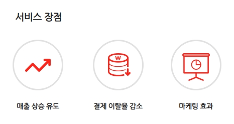 서비스 장점으로는 결제고객 전체에 대한 통계 및 리마케팅 기회를 제공하고, 간편한 결제절차 및 비회원 구매가 가능하여 구매전환율을 상승시킬 수 있으며, 온/오프라인 통합사용이 가능한 쿠폰과 포인트 혜택으로 페이코 회원이 가맹점으로 유입될 수 있습니다.