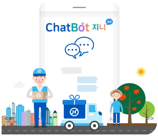 ChatBot 지니는 한진택배를 이용하는 고객과 24시간 상담할 수 있는 인공지능 챗봇 서비스이며, 배송이나 예약 등 궁금한 내용을 문의할 수 있습니다.
