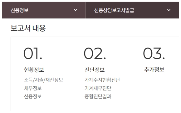 신용회복위원회의 신용상담보고서 발급항목은 고객의 동의를 거쳐 전국은행연합회 및 개인신용평가회사를 통하여 조회된 자료를 제공해드리는 서비스입니다.
