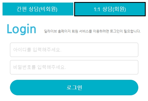 1:1고객상담이나 AS접수 등의 서비스 이용을 위해서는 로그인이 필요합니다. 아이디와 비밀번호를 입력하여 접속할 수 있고, 회원가입을 원하시는 분들은 회원약관 동의 > 실명인증 > 정보입력 > 가입완료 순으로 진행할 수 있어요.