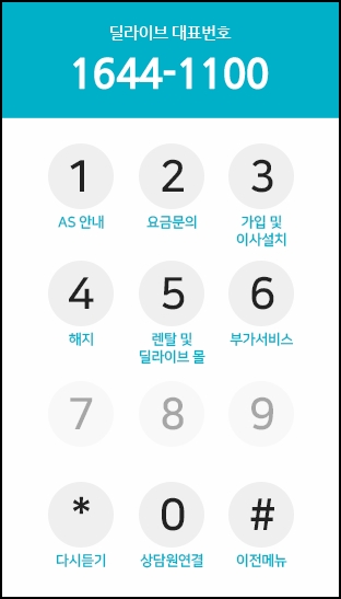 딜라이브 고객센터 전화번호 또는 대표번호는 1644-1100번이고, 딜라이브 인터넷전화 이용고객 무료상담 전화번호는 070-8955-1100번입니다. ARS번호와 서비스내용은 다음과 같습니다.