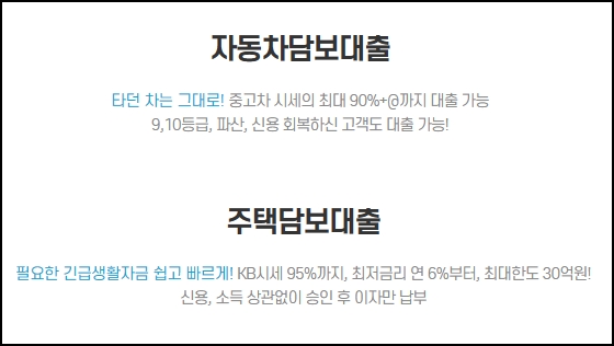 오늘은 해당 대부업체에서 제공하는 자동차담보대출과 주택담보대출 상품에 대하여 알아보도록 하겠습니다.