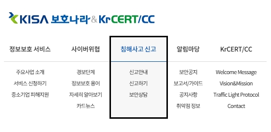 오늘은 KISA 인터넷 보호나라(KISA 보호나라&KrCERT/CC (boho.or.kr))에서 안내하는 침해사고 신고 및 보안상담에 대하여 알아보려고 하는데요, 해당사항이 있으신 분들은 잘 참고해보시기 바랍니다.