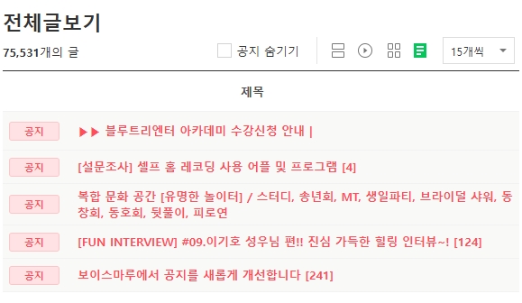 최근에도 회원들이 활동하고 있는지 확인하기 위해서 [전체글보기] 메뉴를 선택하여 신규로 올라온 글들을 확인해보았는데요, 오늘날짜로 올라온 글들이 꽤 있었습니다. 다만 게시글 열람을 위해서는 로그인이 필요합니다.