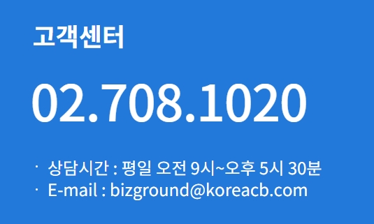비즈그라운드에서 제공하는 다른 평가상품에 대해서도 알아보시려면 홈페이지(KCB 비즈그라운드 (bizground.co.kr))를 참고해주시고, 문의사항이 있으시면 고객센터 02-708-1020번을 이용하시기 바랍니다. 상담시간 및 이메일주소는 위의 그림을 참고하세요.