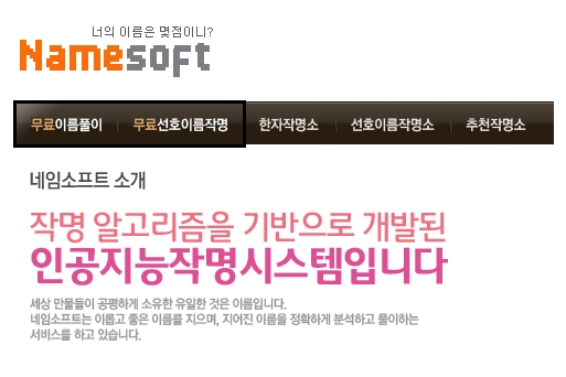 이번시간에는 네임소프트 또는 Namesoft라는 이름 짓기 사이트를 이용해보려고 하는데요, 이름 풀이 서비스도 같이 제공하고 있으니 여러분들도 참고하시면 좋을 것 같습니다.