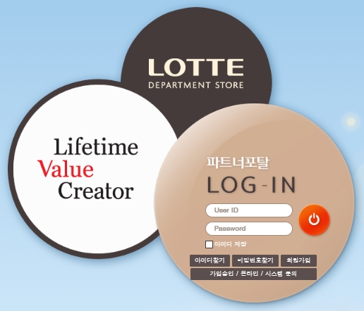 해당 페이지(롯데백화점 파트너포탈 (lotteshopping.com))에 접속하시면 위의 그림과 같은 로그인 화면을 볼 수 있는데요, 아이디와 비밀번호를 입력하여 접속할 수 있습니다.