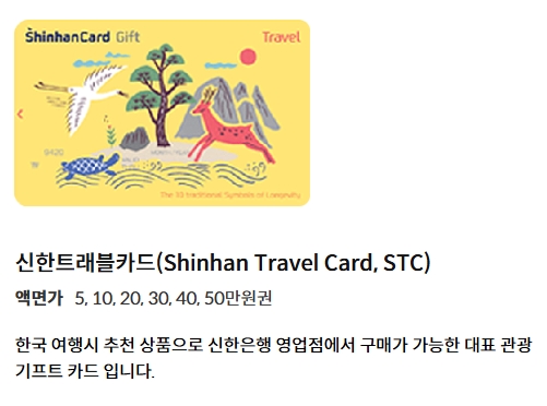 권종은 5만원,10만원, 20만원, 30만원, 40만원, 50만원으로 다양하게 있으며, 구매는 신한은행 영업점에서 하실 수 있습니다. 구비서류는 개인의 경우 본인 실명증표입니다. 법인의 경우 개인명의 법인카드는 본인 실명증표와 위임서류, 법인명의 법인카드 및 현금구매의 경우 사업자등록증과 대리인 신분증 및 위임서류입니다.