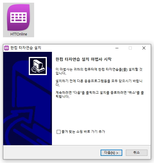 페이지를 맨 하단까지 내리시면 [(구)한컴 타자연습 다운로드] 항목을 선택하여 구버전을 다운받을 수 있는데요, 설치파일(HTTOnline)을 실행하여 인스톨 후 프로그램을 실행하시면 됩니다.