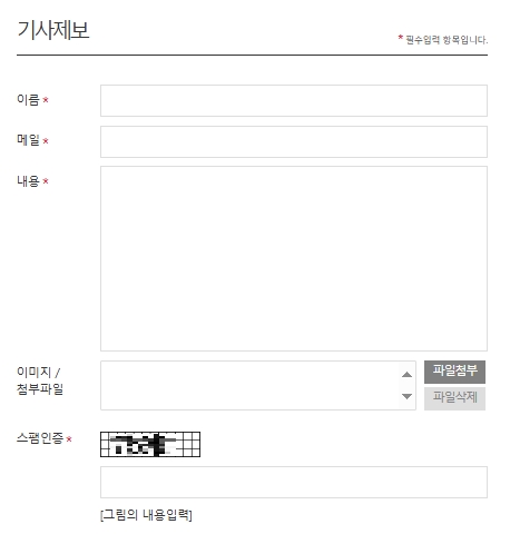 기사제보 페이지(파주바른신문 언론협동조합 기사제보)에 접속하시면 이름, 메일, 내용, 이미지/첨부파일, 스팸인증을 입력하여 기사제보를 할 수 있습니다. 해당 서비스 이용을 위해서는 개인정보 수집/이용에 관한 정책에 동의해야 합니다.
