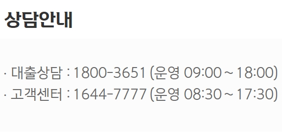기타 상품 이용이나 신한저축은행 이용과 관련하여 문의사항이 있으시면 대출상담 1800-3651번(09:00 ~ 18:00), 고객센터 1644-7777번(08:30 ~ 17:30)으로 연락하시기 바랍니다.