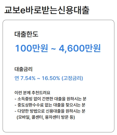 교보생명의 보험계약자 중 소득증빙이 가능한 고객을 위한 대출 서비스입니다.