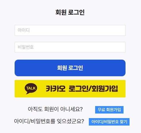 계정이 없으신 분들은 신규로 가입할 수 있으며, 카카오를 통한 회원가입도 가능합니다.