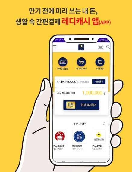 1. 모바일 간편결제 : 카드나 현금 또는 인증서가 없어도 레디캐시 앱(APP)의 바코드 하나로 빠르고 간편하게 결제할 수 있어요.