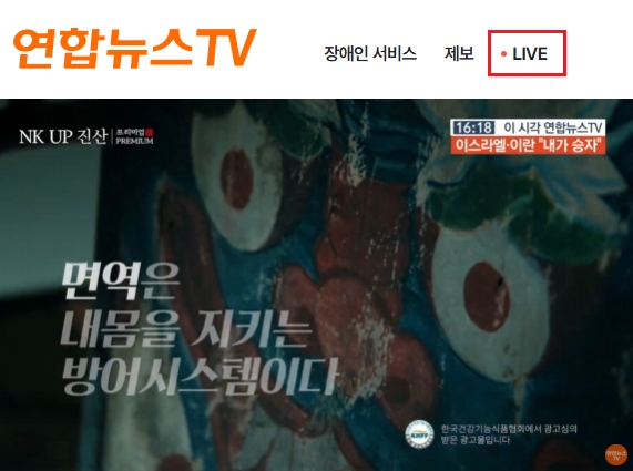 연합뉴스TV 홈페이지(연합뉴스TV)에 접속하여, 메인화면 상단 우측의 [LIVE] 메뉴를 선택하시면 곧바로 라이브 방송을 시청할 수 있습니다. 사실상 유튜브의 영상을 그대로 보여주는 것이기에, 더 많은 영상을 원하시는 분들은 연합뉴스TV 유튜브 채널을 방문하셔도 좋을 것 같네요.