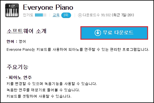 Everyone Piano는 키보드를 사용해서 피아노를 연주할 수 있는 편리한 프로그램입니다. [무료 다운로드] 버튼을 눌러서 다운받을 수 있으며, 지원하는 언어는 영어입니다.