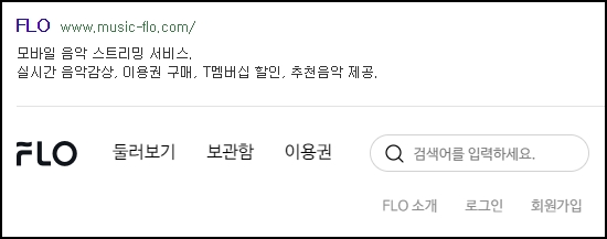일단은 FLO 홈페이지 주소를 찾아서 접속해야 합니다. 모바일 음악 스트리밍 서비스라고 소개되어 있지만 PC에서도 감상이 가능합니다.
