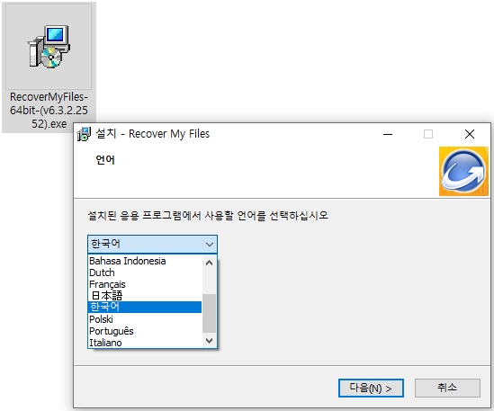 기본적으로는 C드라이브의 프로그램 파일 폴더에 저장되는데요 [찾아보기] 버튼을 누르시면 여러분들이 원하는 위치로 지정할 수 있습니다. 그럼 Recover My Files 실행화면도 보여드리도록 하겠습니다.