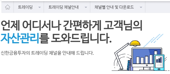 [채널별 안내 및 다운로드] 메뉴를 보시면 되는데요, 언제 어디서나 간편하게 고객의 자산관리를 도와준다고 합니다. 신한금융투자의 트레이딩 채널을 확인할 수 있으며,