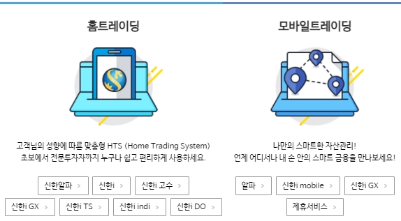 홈트레이딩과 모바일트레이딩이 있습니다. 저는 개인적으로 HTS를 선호하는 편인데, 스마트폰보다는 컴퓨터로 해야 차트라든지 뉴스 및 수급과 같은 기타 정보들을 더 크고 자세하게 확인이 가능하기때문입니다.