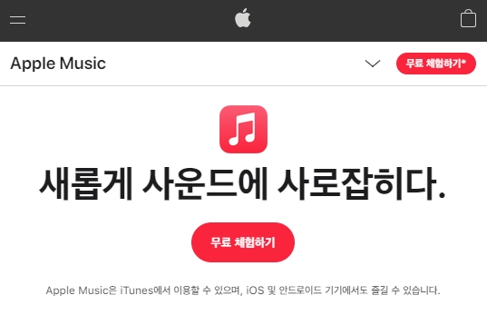 오늘은 애플뮤직 가격에 대한 이야기를 해보려고 하는데요, 개인요금제와 가족요금제로 구분되어 있습니다. Apple Music 페이지에 접속하시면 [새로운 사운드에 사로잡히다] 라는 문구를 볼 수 있습니다. [무료 체험하기] 버튼을 눌러서 체험이 가능하고, 아이튠즈에서 이용할 수 있으며 iOS 및 안드로이드 기기에서 즐길 수 있어요.