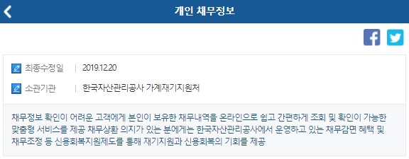채무정보 확인이 어려운 고객에게 본인이 보유한 채무내역을 온라인으로 쉽고 간편하게 조회 및 확인이 가능한 맞춤형 서비스를 제공합니다.