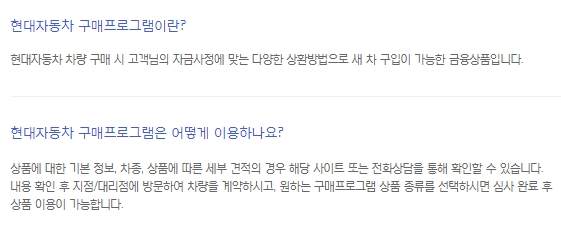 현대자동차 구매프로그램은 차량 구매시 고객의 자금사정에 맞는 다양한 상환법으로 새차구입이 가능한 금융상품입니다. 상품에 대한 기본정보, 차종, 세부견적의 경우 해당사이트나 전화상담을 통하여 확인이 가능합니다. 내용확인 후 지점이나 대리점에 방문하여 차량을 계약하시고, 원하는 구매프로그램 상품종류를 선택하여 심사완료 후 상품이용이 가능합니다.