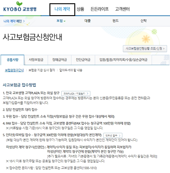 보험금을 청구하기 위해서 가장 기본적으로 필요한 서류가 바로 보험금 청구서라고 생각하는데요, 오늘은 교보생명 보험금청구서 다운로드하는 방법에 대하여 안내드리겠습니다. 접수를 위한 몇가지 방법이 있는데요, 먼저 방문접수의 경우 고객플라자 또는 외설창구에 방문할 수 있으며 신분증과 보험가입증명서를 지참해야 합니다.