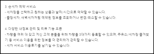 서비스 이용실적에 따라서 회원등급이 올라가면 더욱 풍부한 혜택을 받아보실 수 있어요. 손세차 예약서비스 및 다양한 내정보 관리와 리뷰기능도 오픈되었습니다.