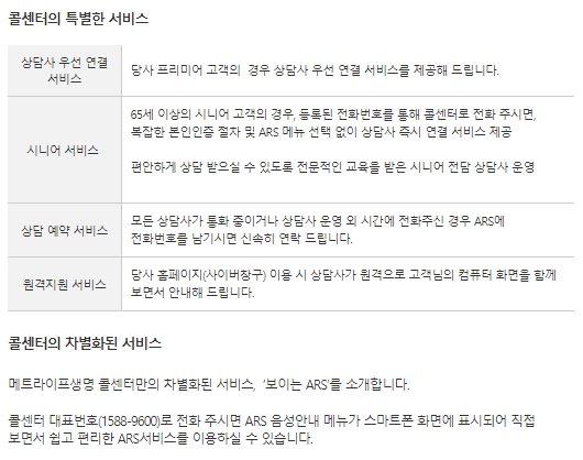 당사 홈페이지 이용시 상담사가 원격으로 고객의 컴퓨터 화면을 함께 보면서 안내해드리는 원격지원 서비스도 있습니다. 메트라이프생명 콜센터만의 차별화된 서비스인 보이는 ARS는