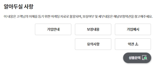 말씀드린 내용은 고객의 이해를 돕기위한 마케팅 자료로 활용되며, 보상여부와 세부내용에 대해서는 해당보험약관을 참고하시기 바랍니다. 가입안내, 보장내용, 가입예시, 유의사항, 약관을 확인할 수 있습니다.