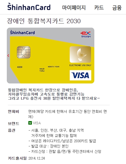 신한카드 또는 ShinhanCard에서 제공하는 장애인 통합복지카드 2030 상품에 대한 안내를 드려보도록 하겠습니다. 통합장애인 복지카드 한장으로 장애인증, 지하철무임승차에 고속도로 통행료 감면기능 및 LPG 충전시 30원 할인혜택까지 받을 수 있습니다.