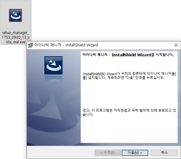 매니저 프로그램을 다운받으시면 실제로 위의 그림과 같은 exe파일을 볼 수 있는데요, 더블클릭하여 실행 후 인스톨을 진행하시면 되겠습니다.