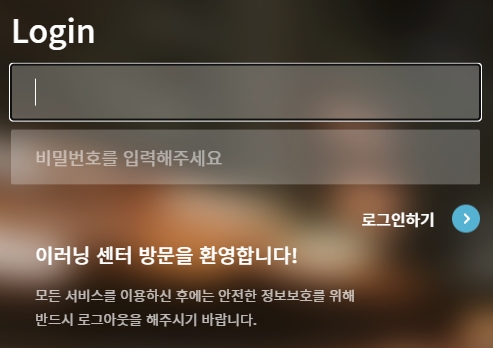 교육신청을 위해서는 로그인이 필요한데요, 아이디와 비밀번호를 입력해서 접속 후 신청하시면 되겠습니다. 새롭게 회원으로 가입할수도 있고, 아이디 찾기나 비밀번호 찾기 서비스도 이용할 수 있습니다. 또한 모든 서비스를 이용한 후에는 안전한 정보보호를 위하여 반드시 로그아웃을 해주세요.