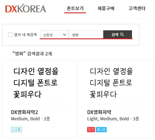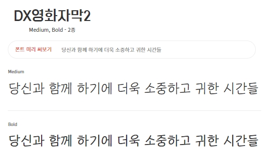 웹 및 앱이미지의 경우 웹/앱디자인, 이메일 이미지, 웹툰, 배너광고, 웹카달로그, 웹브로슈어, 뉴스레터등 이미지파일입니다. 영상자막의 경우 온라인이나 유튜브 등의 SNS입니다. 홈페이지 메인화면 상단의 [폰트보기] 메뉴를 선택하여, 검색창에 [영화]라고 키워드를 잡아서 검색하시면 두가지의 폰트를 확인할 수 있습니다.