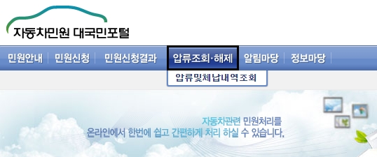 자동차민원 대국민포털 사이트에 접속해서 [압류조회/해제] 메뉴를 선택하시면 자동차 압류조회 및 압류해제 그리고 체납내역조회 서비스를 이용할 수 있습니다. 본인소유의 자동차에 대하여 조회할 수 있고, 일부 압류 및 체납내역은 정보제공기관에서 제공하지 않을 수 있기때문에 반드시 확인 후 납부해주세요.