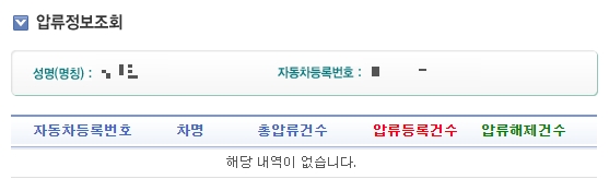 저도 제 자동차 정보를 기준으로 조회해보았는데요, 해당내역이 없다고 나왔습니다. 채무자의 자동차에 대하여 법률상 처분이 제한되는 강제집행을 한 경우 법원이나 행정관청의 촉탁에 의하여 자동차 등록원부에 등록한 압류등록정보를 조회합니다. 납부확인은 경찰청, 도로공사, 지자체 체납금 사이트에서 하실 수 있습니다.