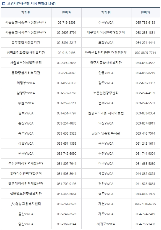 고령자 인재은행 지정현황은 위의 표와 같으며 기관명과 연락처 정보를 확인할 수 있습니다. 현재 여러분들과 가까이에 있는 기관을 찾아서 연락해보시기 바라구요, 이번시간 글쓰기는 여기서 마무리 하도록 하겠습니다.