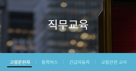 교통안전교육 항목은 노화와 안전운전에 관한 사항, 약물과 운전에 관한 사항, 기억력과 판단능력 등 인지능력별 대처에 관한 사항, 교통관련 법령 이해에 관한 사항이 있습니다. 교통안전 교육센터(홈 | 교통안전 교육센터 (koroad.or.kr))에 접속하여 고령운전자 교육을 이수할 수 있어요.